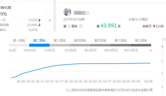 在店铺的层面上有也会有相应的一些影响,比如说店铺的层级、订单的客单价、动销率、旺旺响应速度和在线时长等等一些因素,特别是其中的店铺层级,不同的店铺层级它们会有不同的流量比例分配,比如说在第二层级的时候,每天会有一个最高流量限定,当我们到达第三层级的时候,就会给一个更高的流量限定量,那么在平时的时候,我们需要尽量的去提高店铺销量,来提升我们的店铺层级,来获得更多的流量资源。